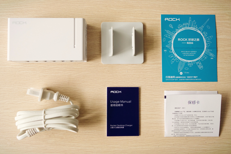 当然,我们购买一个产品,用的不是他的包装,内涵才是最重要的,拆开包装盒,除了充电座主体外,还有分离式底座、电源线、标准的保修卡、说明书和一张积分卡,积分卡可用作抵消现金,多次使用可将积分积累后进行兑换ROCK的产品。